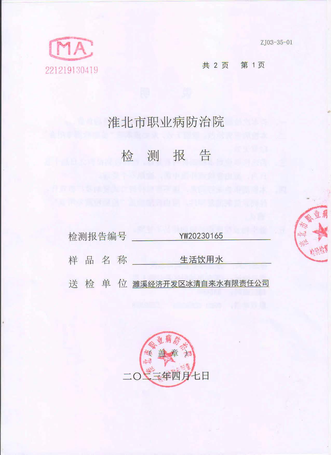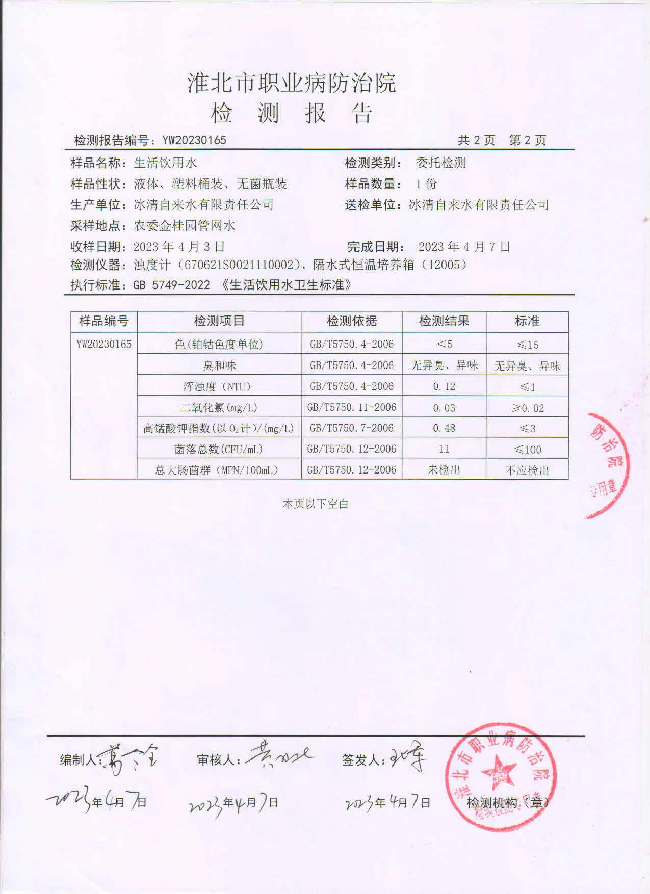 2023年4月管網(wǎng)水半月檢7項指標水質(zhì)檢測報告(4月3日至4月7日)