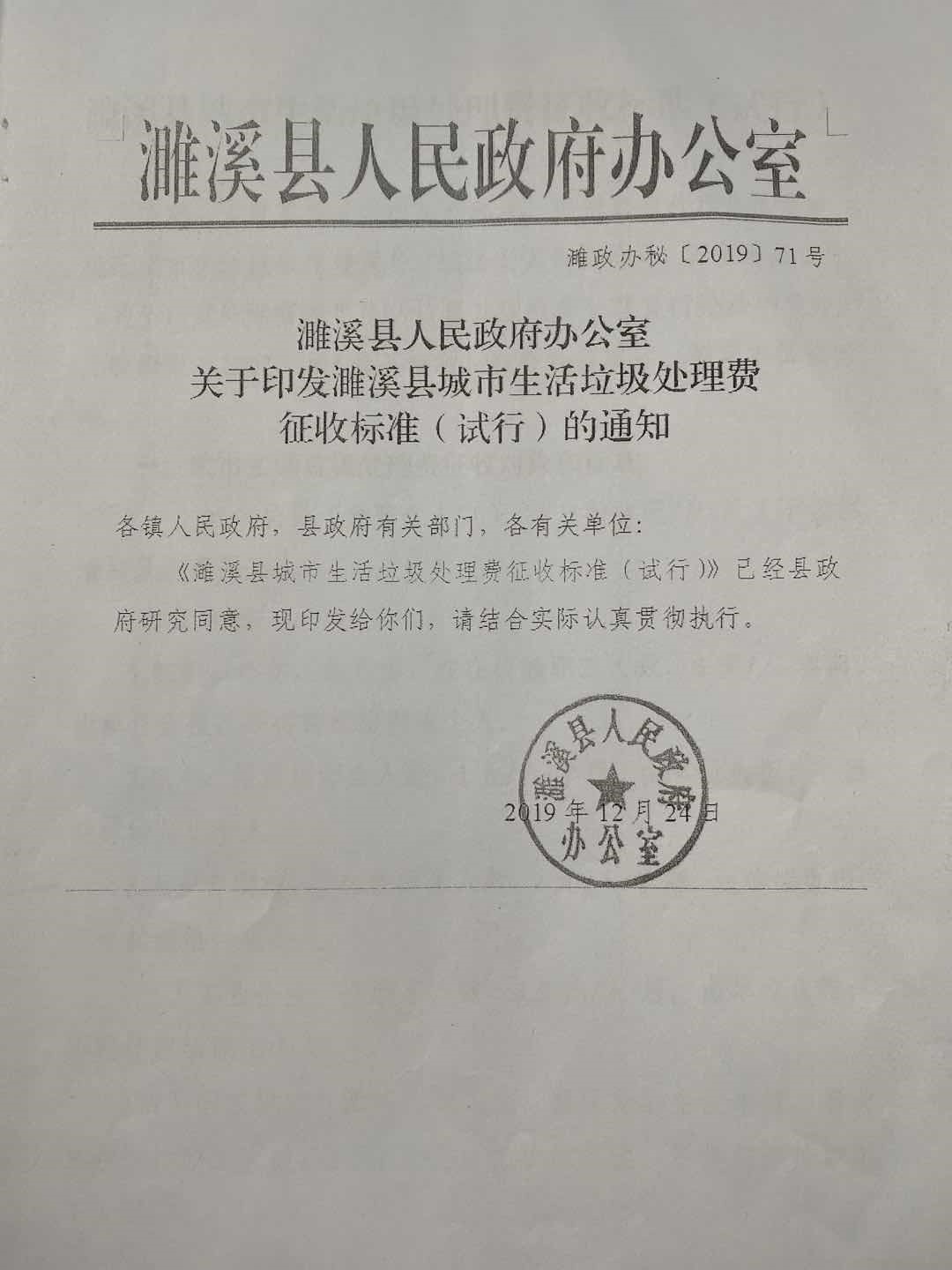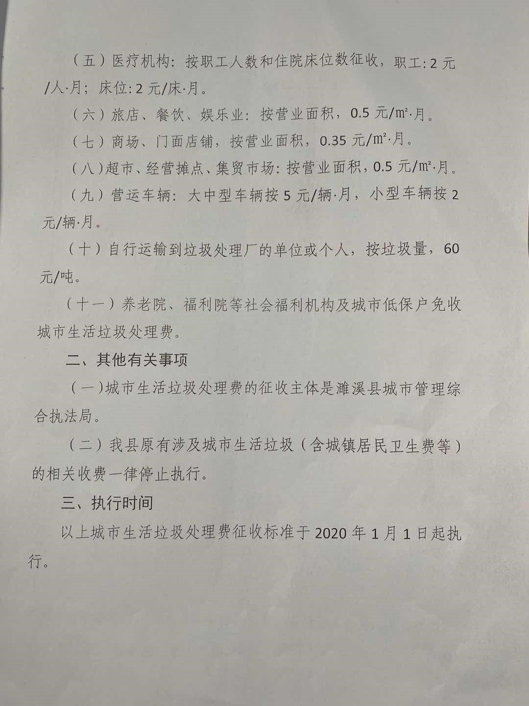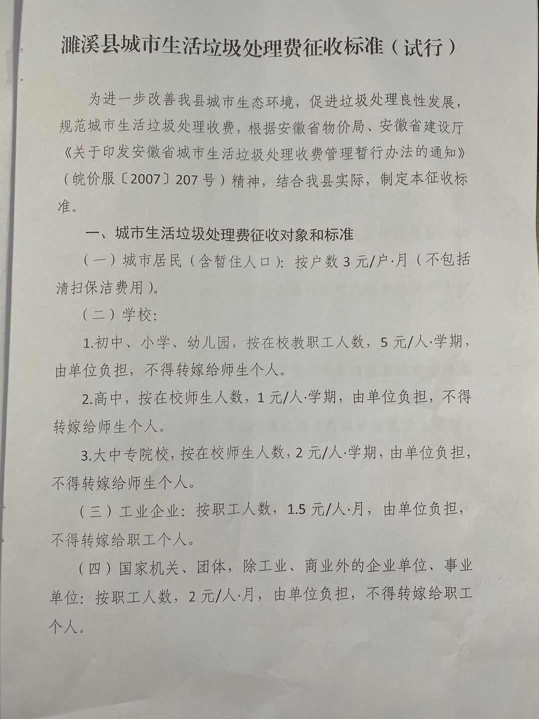 城市生活垃圾處理費(fèi)征收標(biāo)準(zhǔn)試行的通知
