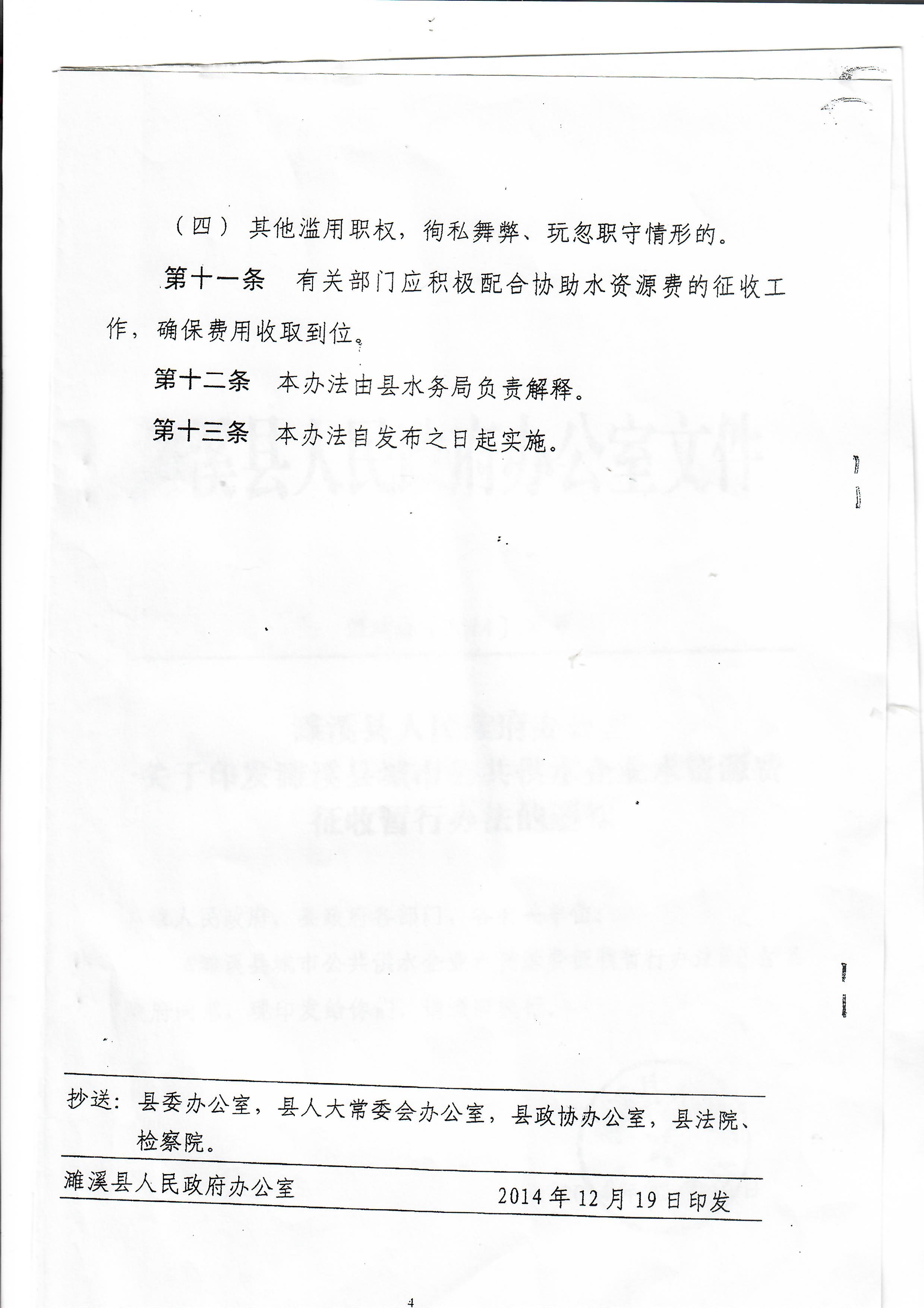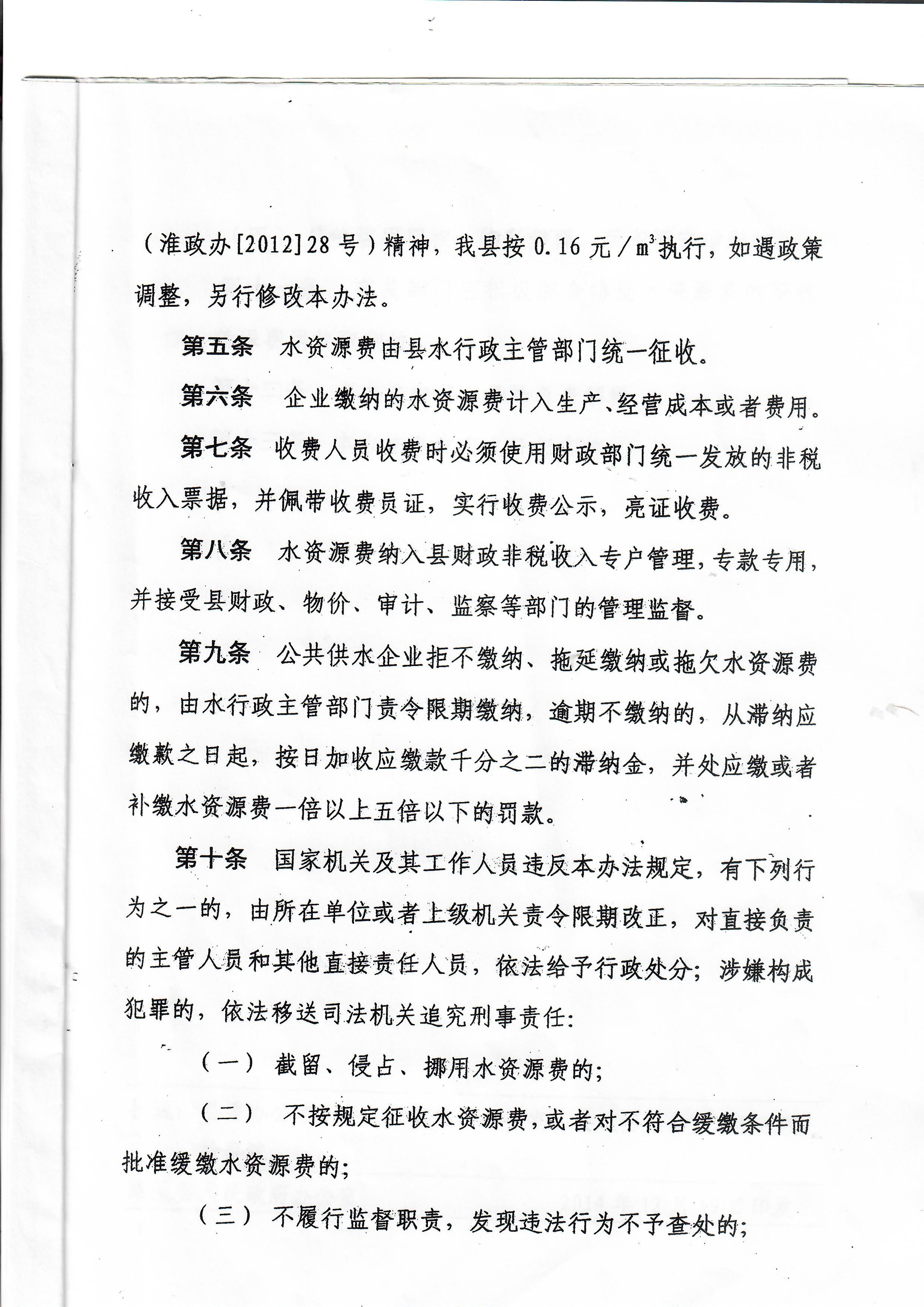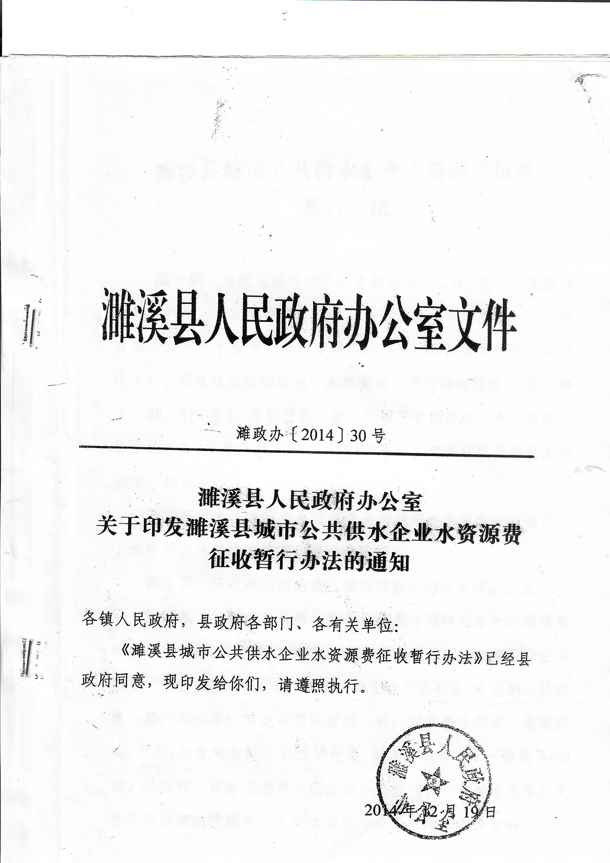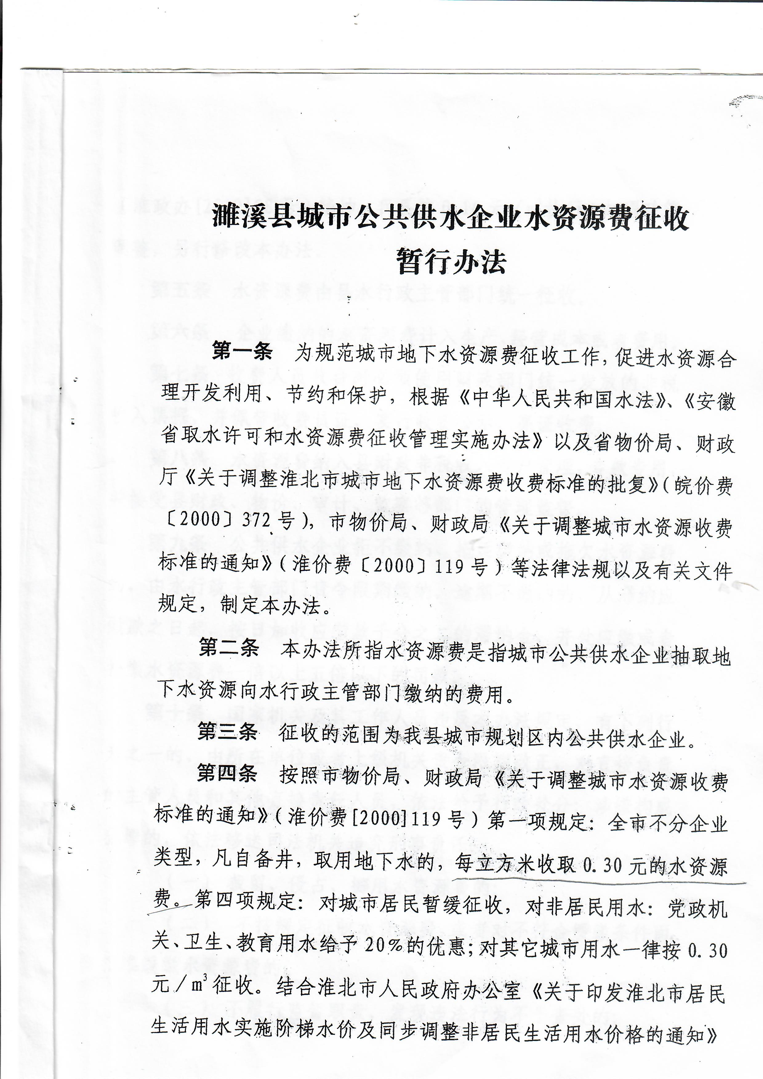 關(guān)于印發(fā)濉溪縣城市公共供水企業(yè)水資源費(fèi)征收暫行辦法的通知