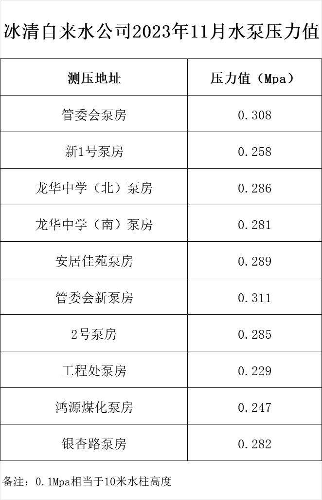 冰清自來(lái)水公司2023年11月水泵壓力值