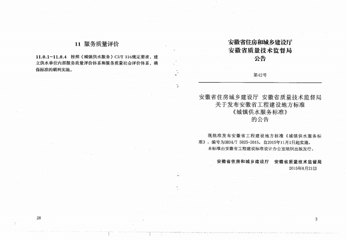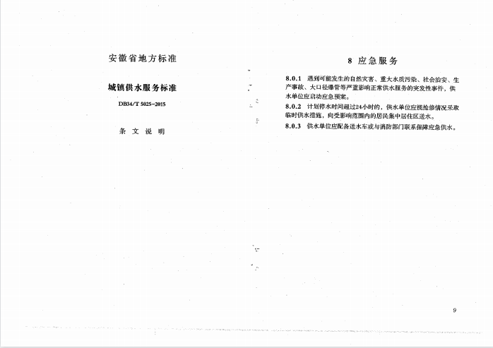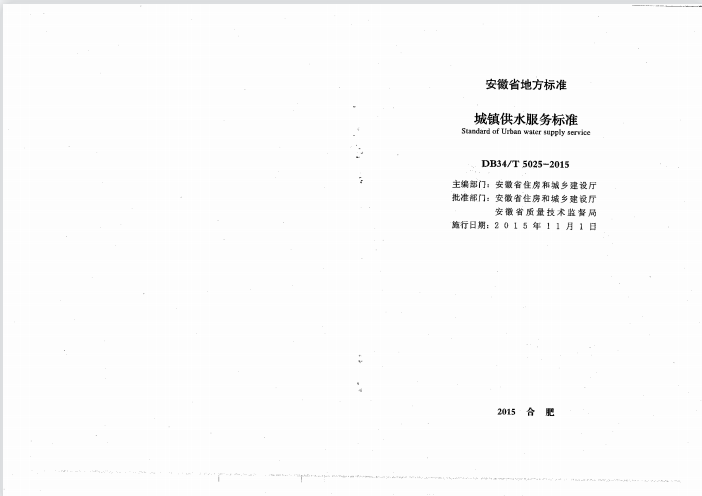 安徽省城鎮(zhèn)供水服務(wù)標(biāo)準(zhǔn)