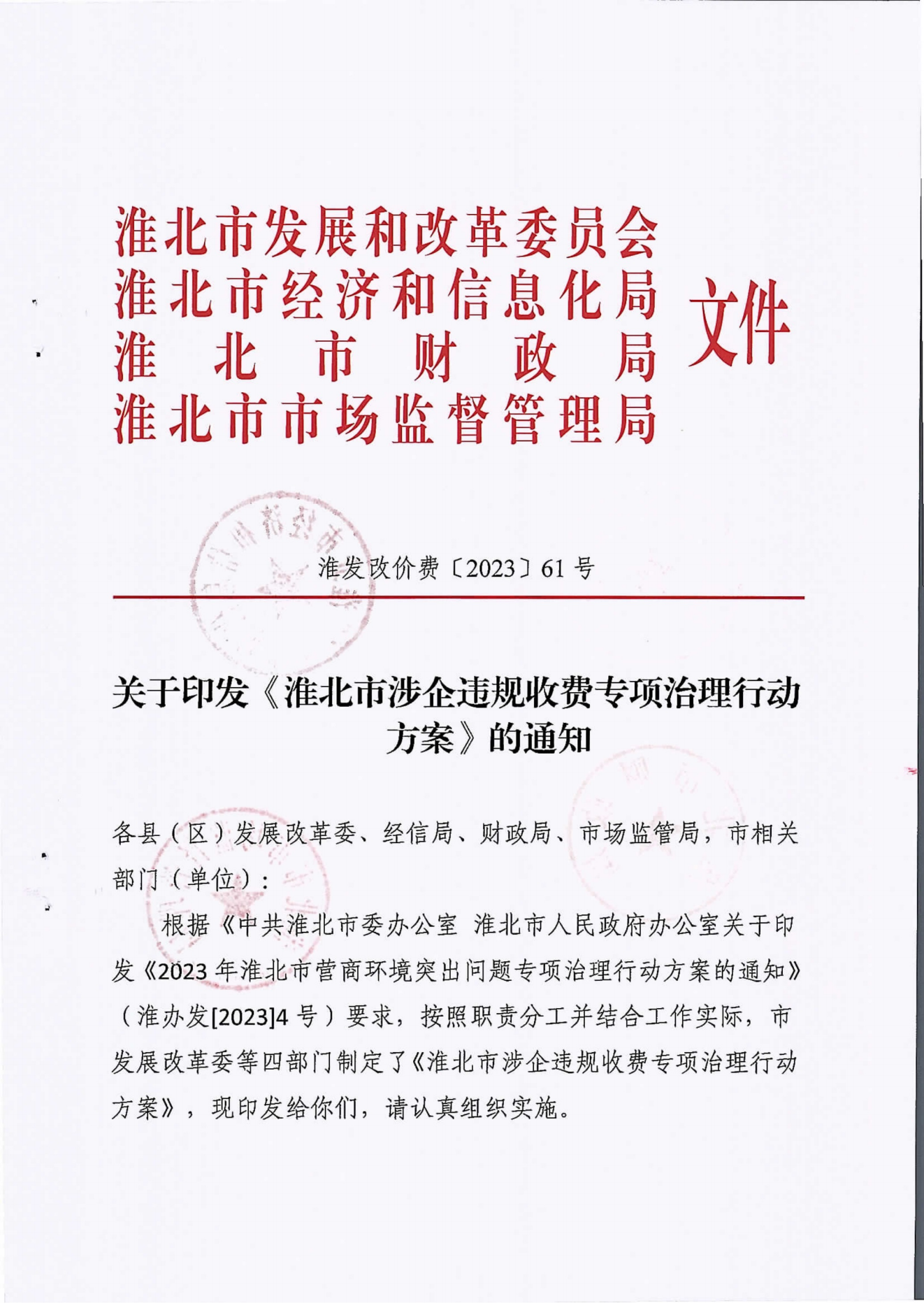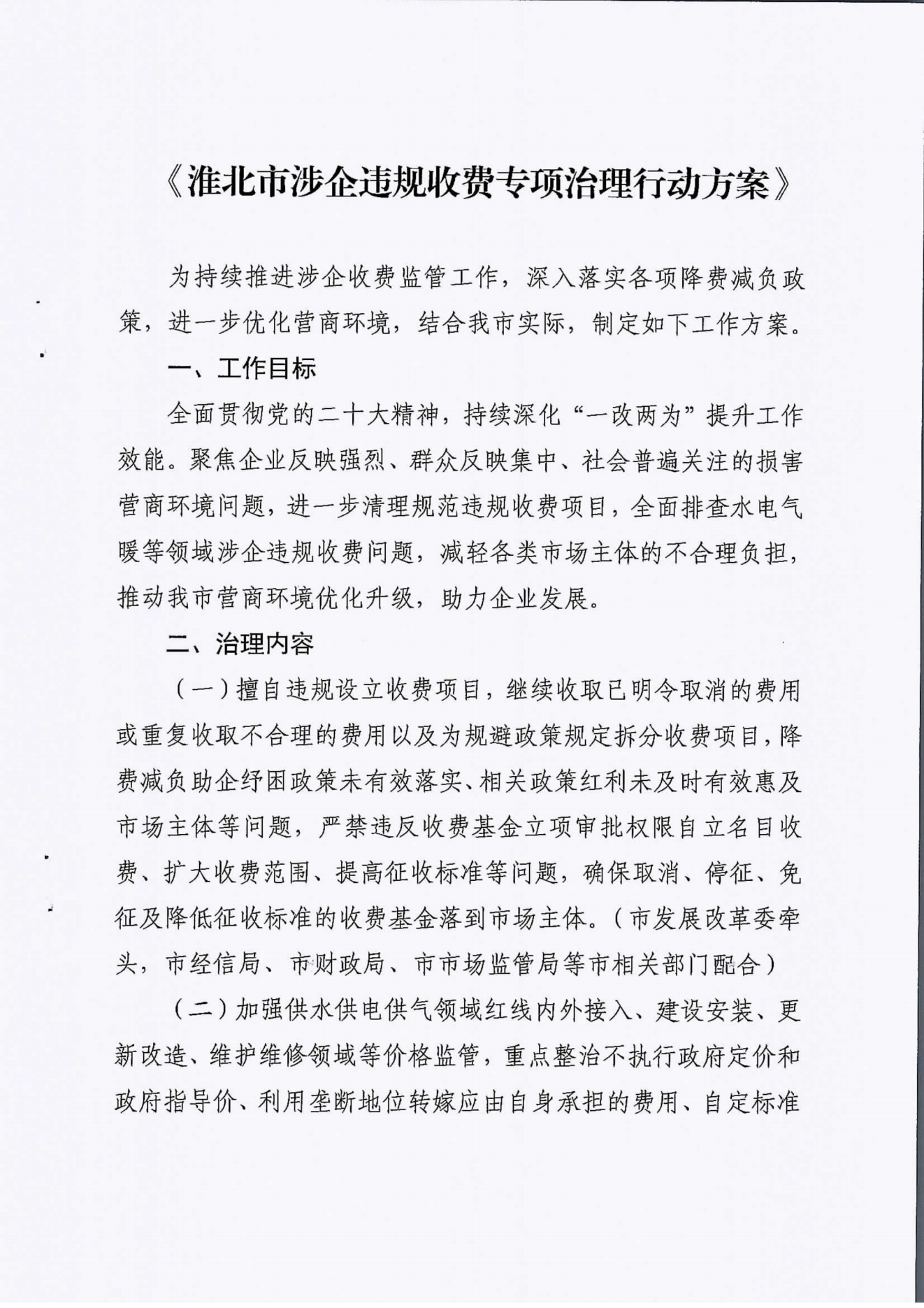 關(guān)于印發(fā)《淮北市涉企違規(guī)收費專項治理行動方案》的通知