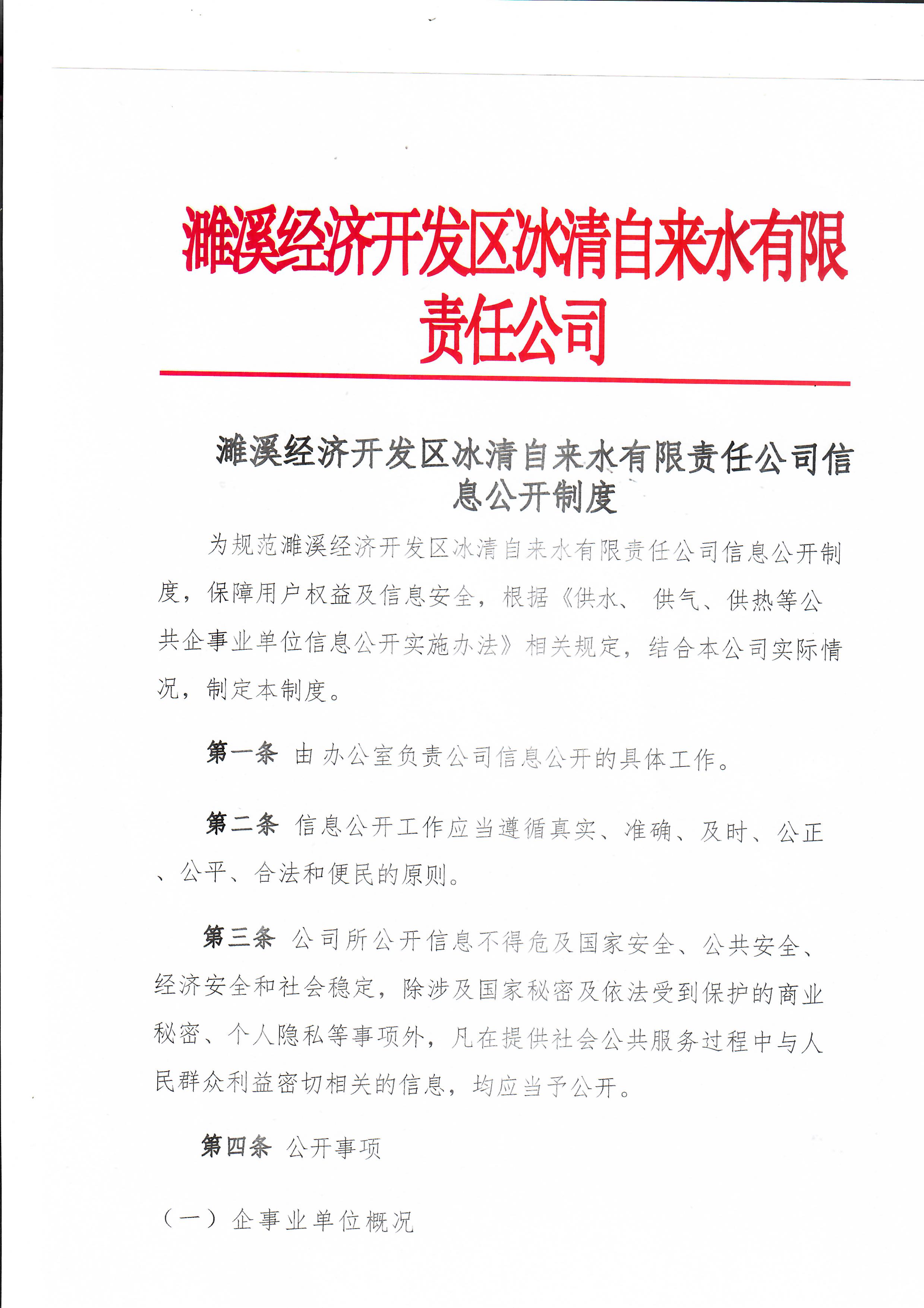 濉溪經(jīng)濟(jì)開發(fā)區(qū)冰清自來水有限責(zé)任公司信息公開制度