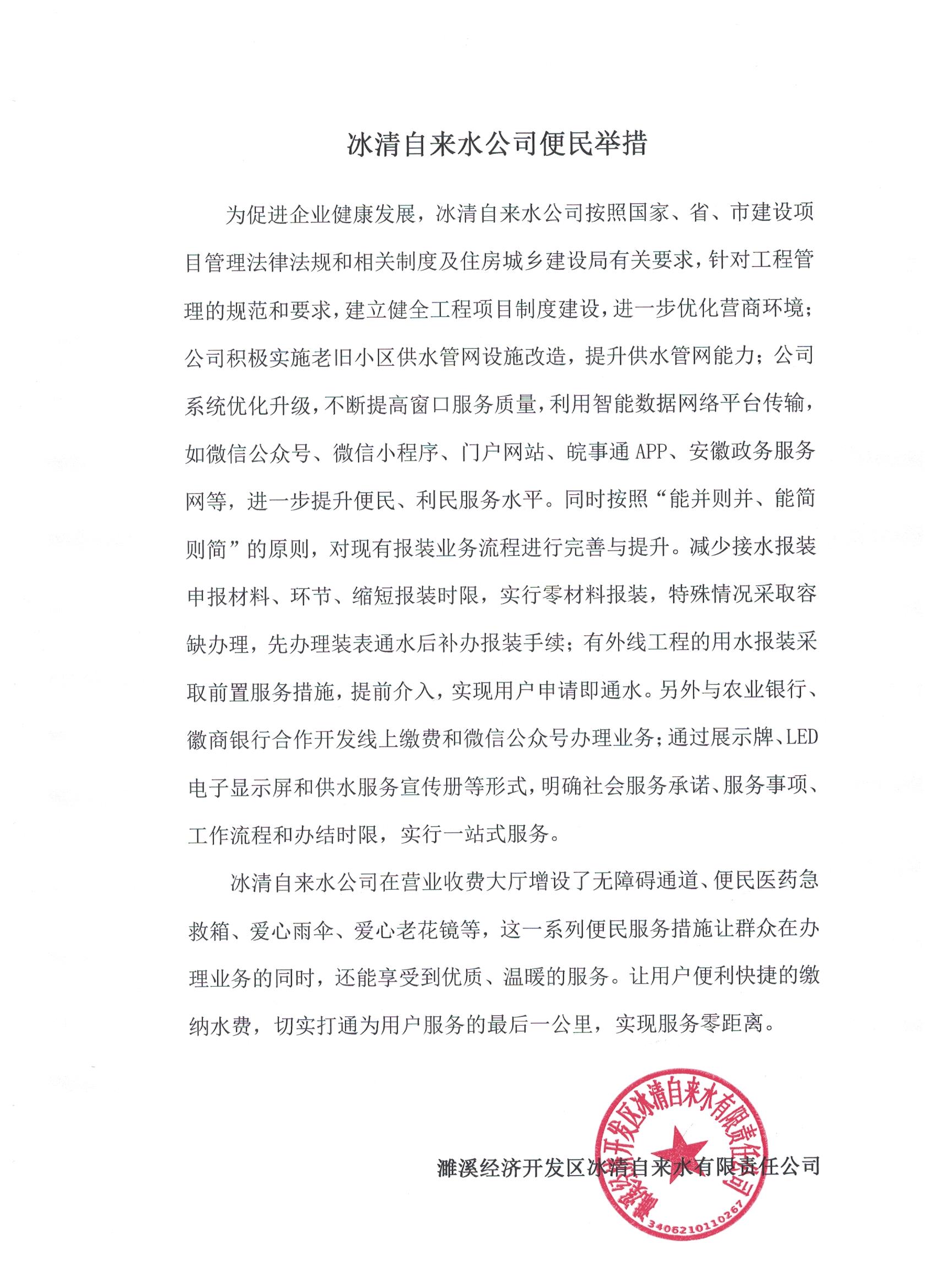冰清自來水公司便民舉措